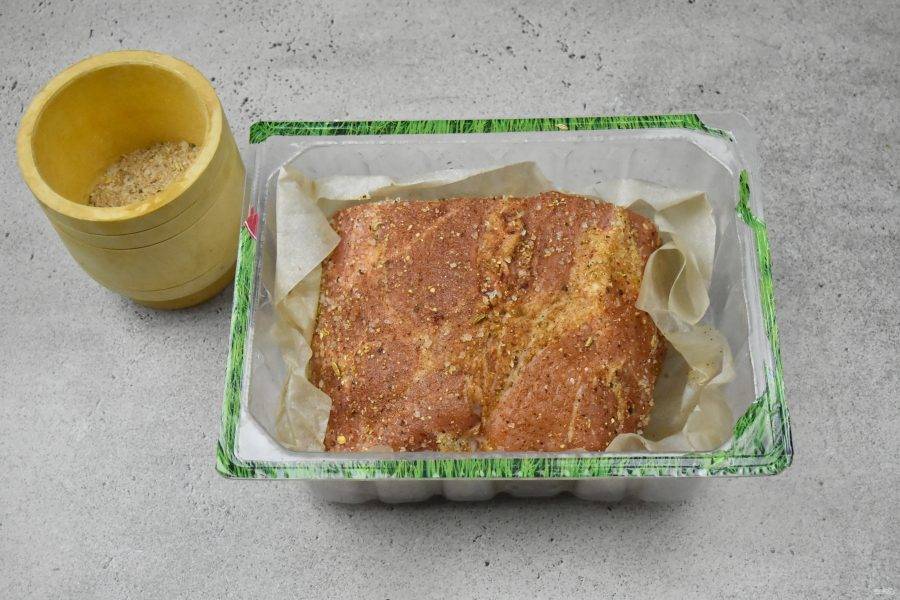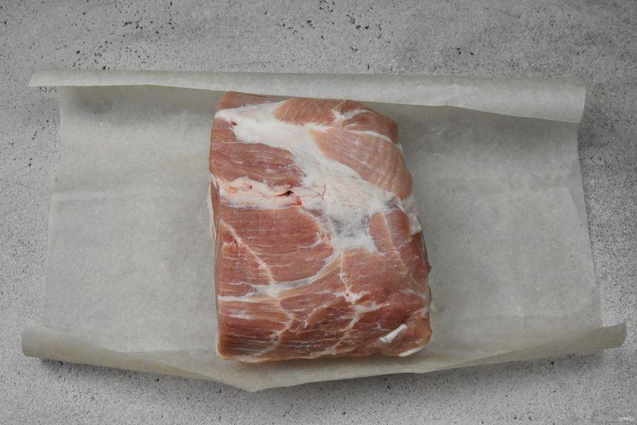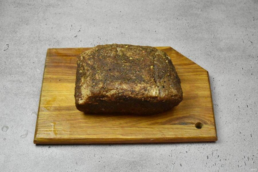 Подготовьте мясо, придайте ему форму, обрезав лишний жир. Оберните мясо пергаментной бумагой и поместите в холодильник на ночь, чтобы оно полностью охладилось.