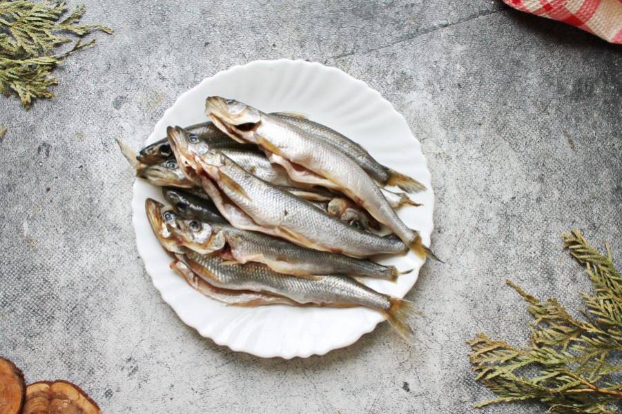 У корюшки отстригите плавники, удалите внутренности и черную пленку. Если попалась икра, смело ее оставляем. Сполосните снаружи и внутри, обсушите.