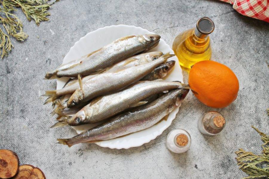 Подготовьте все необходимые ингредиенты для приготовления корюшки на мангале.