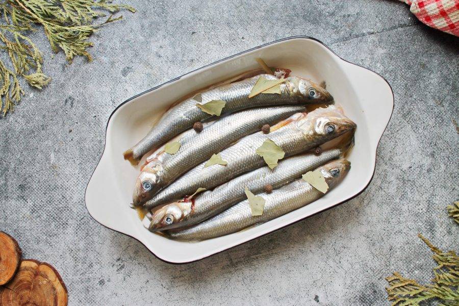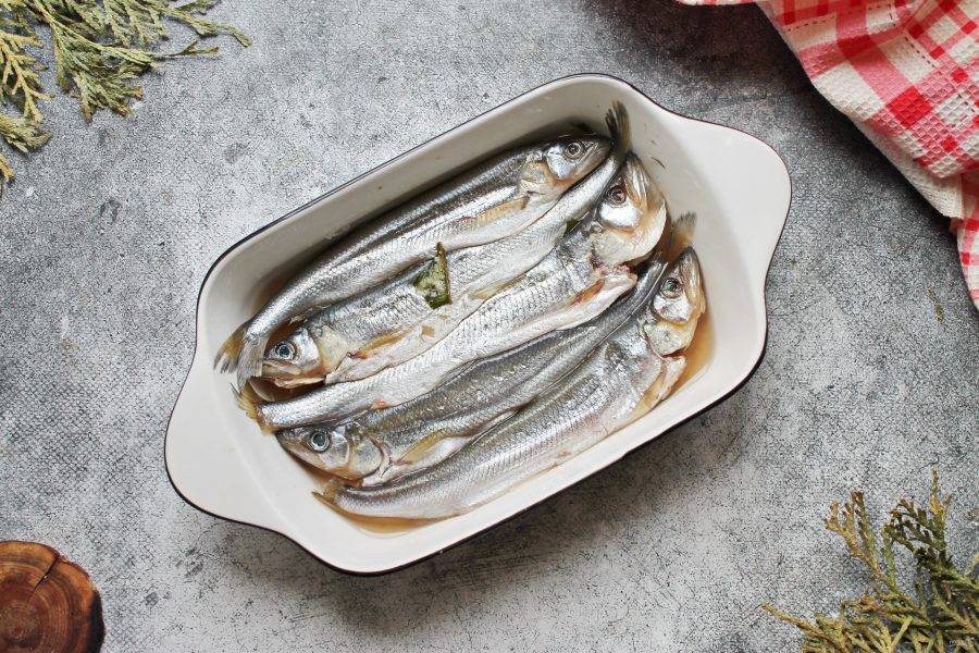 У корюшки удалите жабры, внутренности и хорошо промойте. Дайте воде полностью стечь.