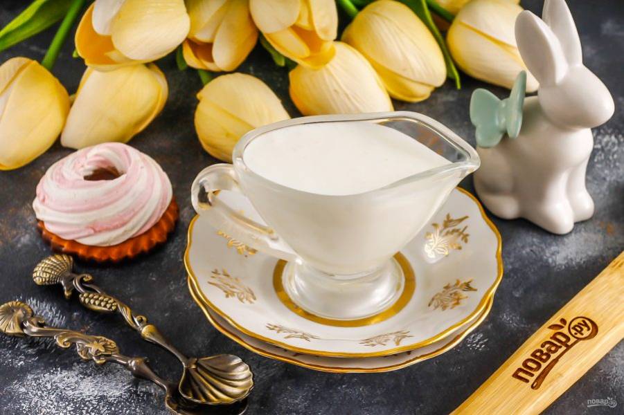 Когда вся пудра смешается с белковой массой — айсинг готов.