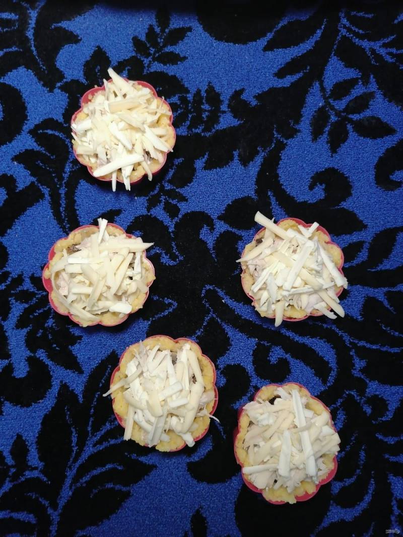 Натертый сыр распределяем на все корзиночки.