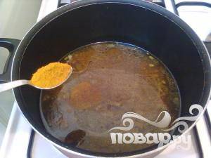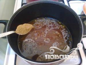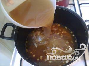 Залить 2 1/2 чашки бульона из под чечевицы.