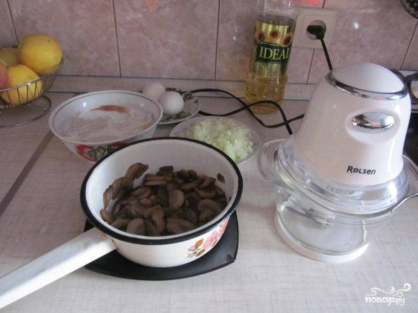Когда грибочки хорошенько проварятся, мы откидываем их на дуршлаг, а затем измельчаем в блендере до состояния фарша.