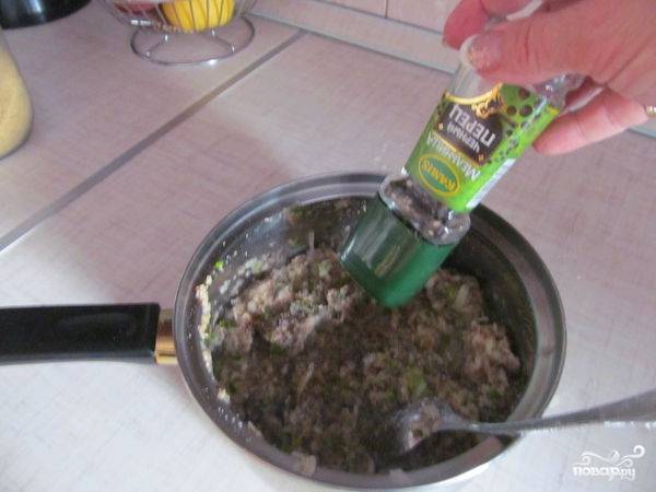 Добавляем соль и специи и еще раз перемешиваем. Если фарш получится очень жидким, то можно добавить немного панировочных сухарей.