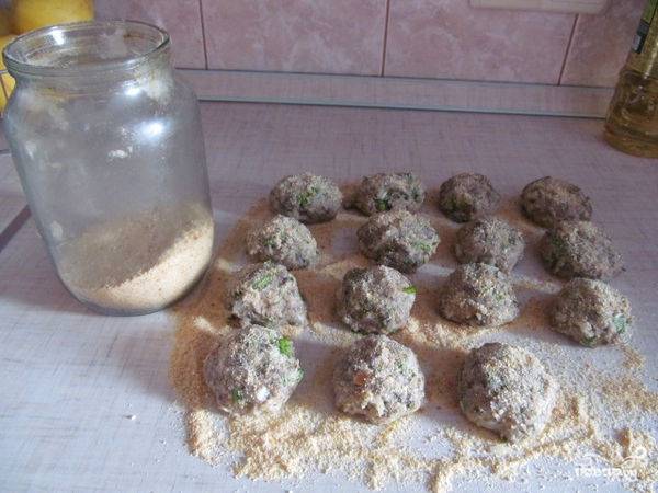 Посыпаем стол сухарями, и выкладываем на них слепленные котлетки, сверху так же насыпаем сухари.
