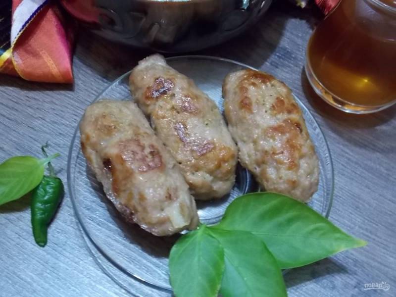 Сформируйте удлиненные котлетки и обжарьте на сковороде в горячем масле в течение 15 минут со всех сторон.