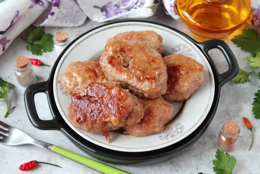 В сковороду налейте растительное масло и разогрейте на среднем огне. Выложите котлеты и убавьте огонь. Готовьте котлеты из бобра с двух сторон до готовности. Примерно по 5-6 минут с каждой стороны. При необходимости подлейте немного воды.