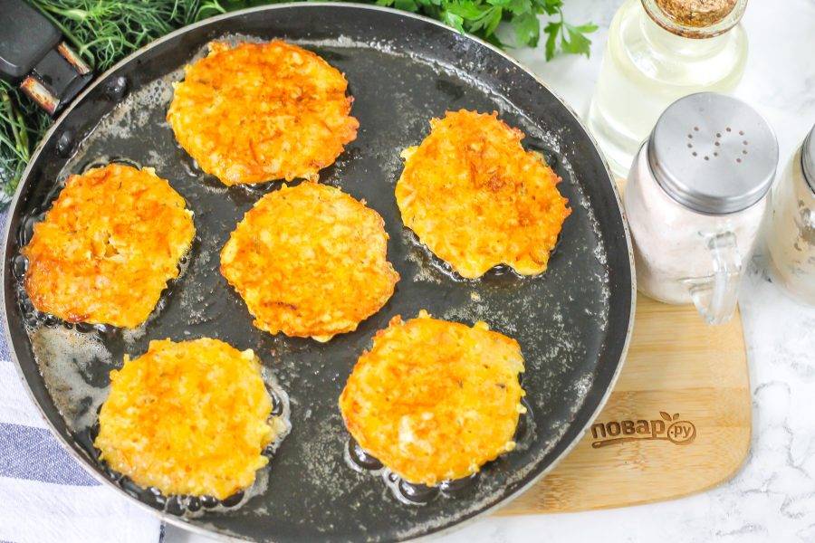 Переверните котлеты на другую сторону и обжарьте такое же количество времени.