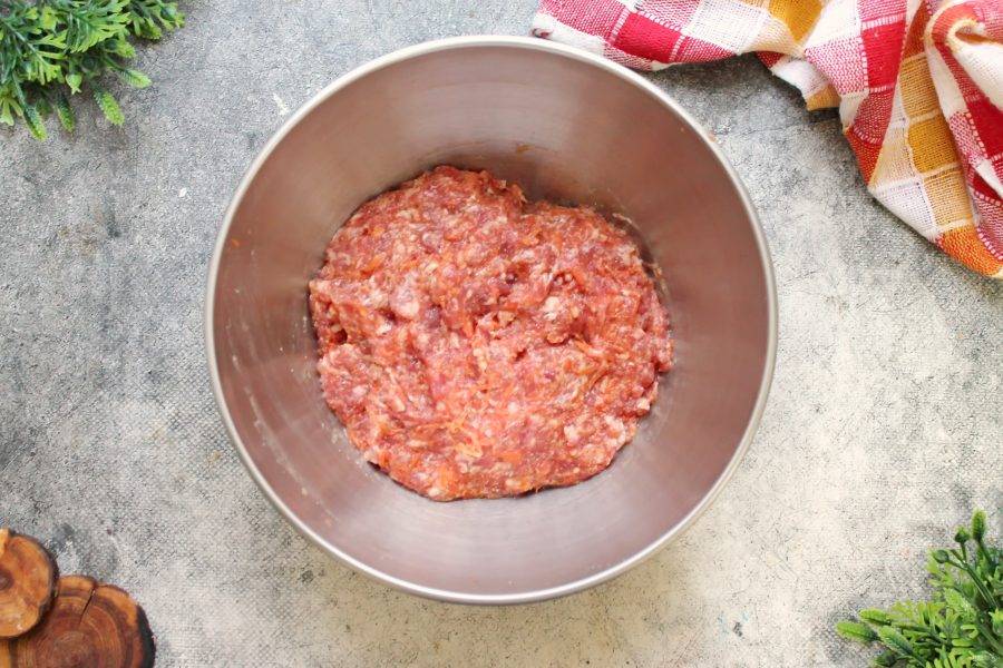 Добавьте к моркови говяжий фарш.