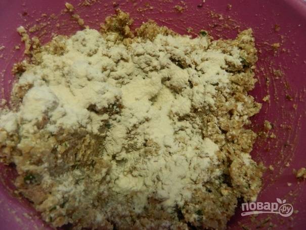 5. Еще добавим одну-две ложки просеянной муки, хорошо перемешаем.