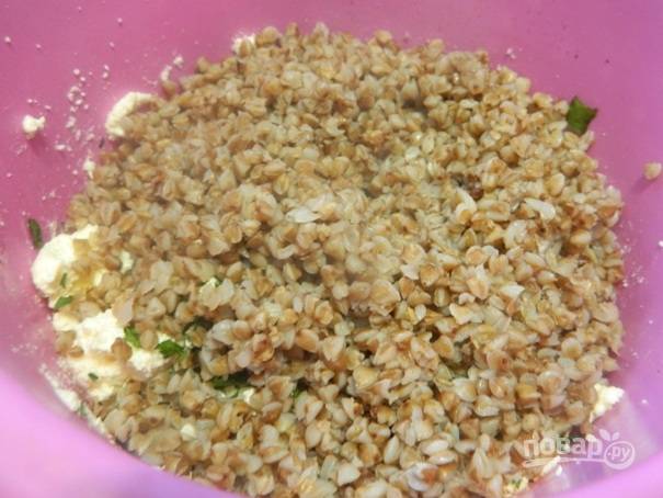4. Затем добавим слегка остывшую гречку.