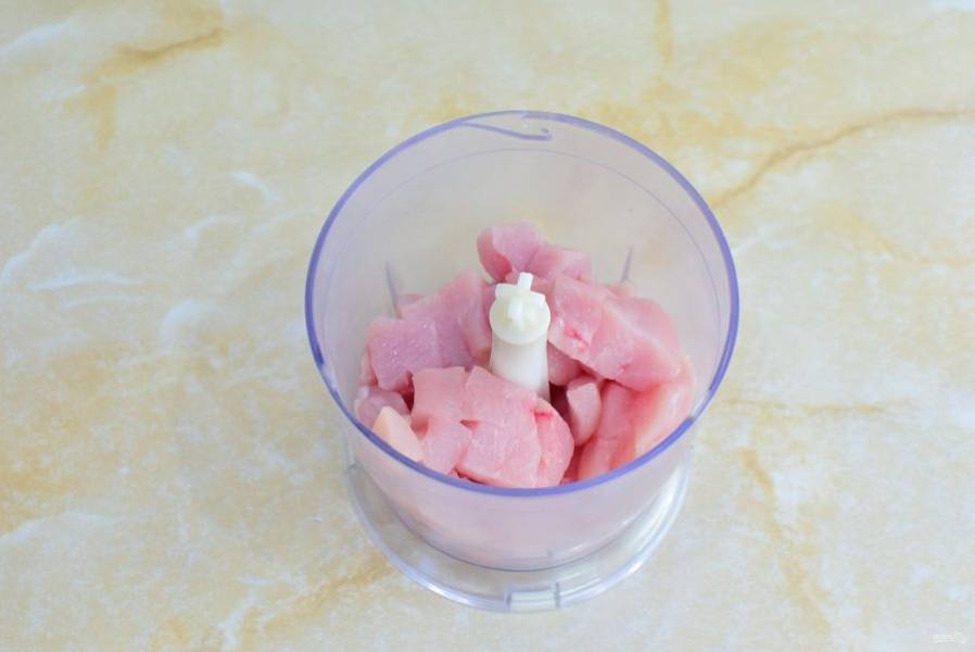 Займитесь приготовлением котлет. Мясо индейки можно пропустить через мясорубку, измельчить в измельчителе или очень мелко нарезать.