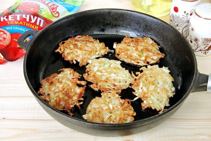 На сковороде разогрейте растительное масло. Выкладывайте получившуюся массу столовой ложкой, формируя котлеты. обжарив одну сторону, котлеты переверните и обжарьте вторую.