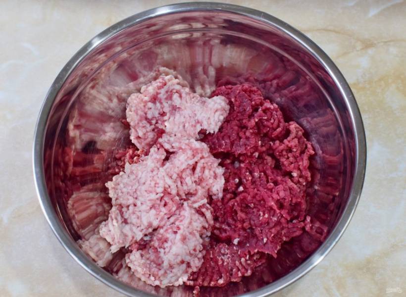 Мясо и сало нарежьте на кусочки, чтобы они проходили в мясорубку.