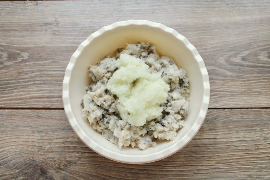 Пропустите через мясорубку репчатый лук и добавьте в рыбный фарш.