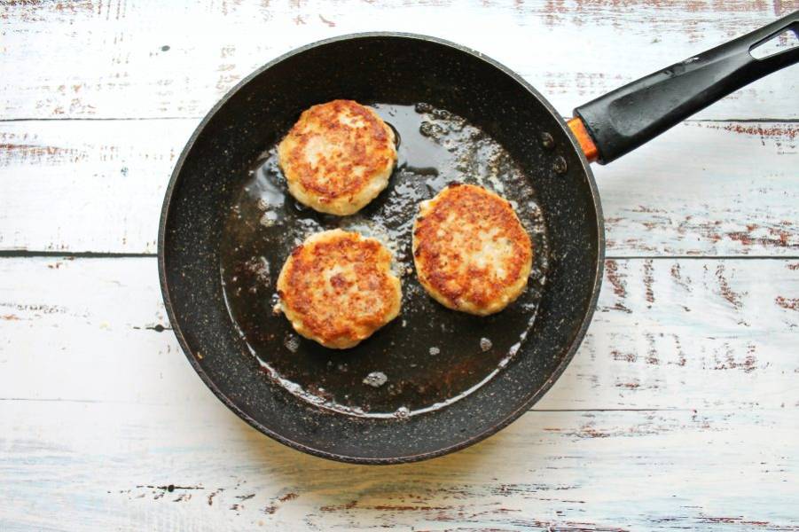 В сковороде разогрейте растительное масло и обжарьте котлеты с двух сторон, на среднем огне, до румяной корочки до готовности. Примерно по 5-7 минут с каждой стороны.