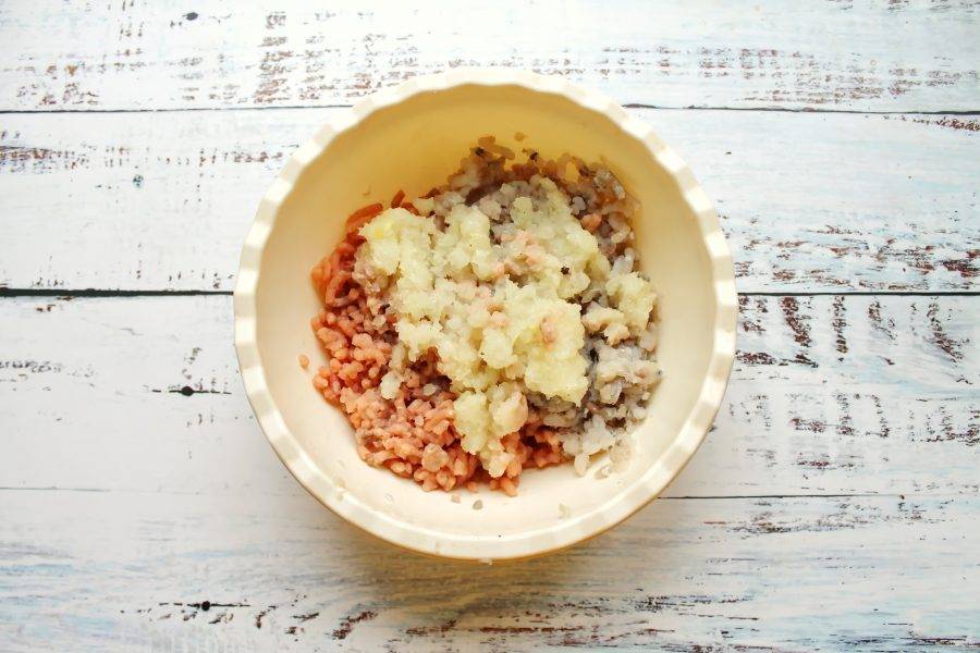 Репчатый лук почистите и измельчите в мясорубке, добавьте к рыбе.