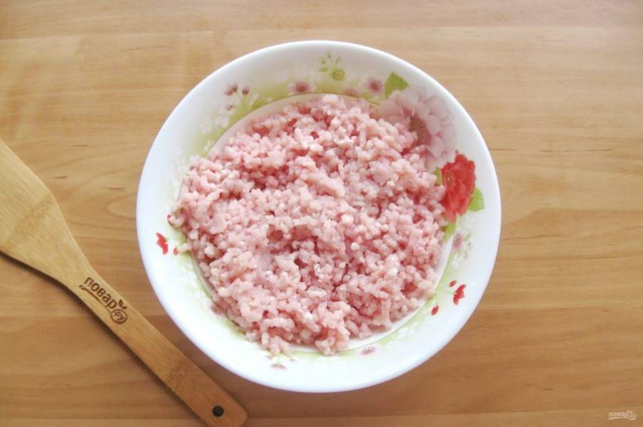 Мякоть свинины и филе индейки пропустите через мясорубку.