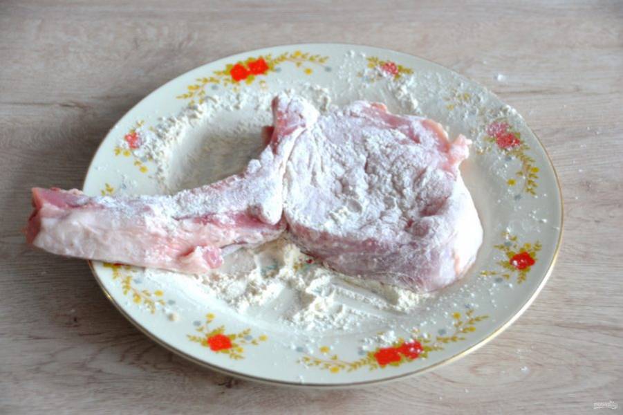 Мясо сначала слегка обваляйте в муке.