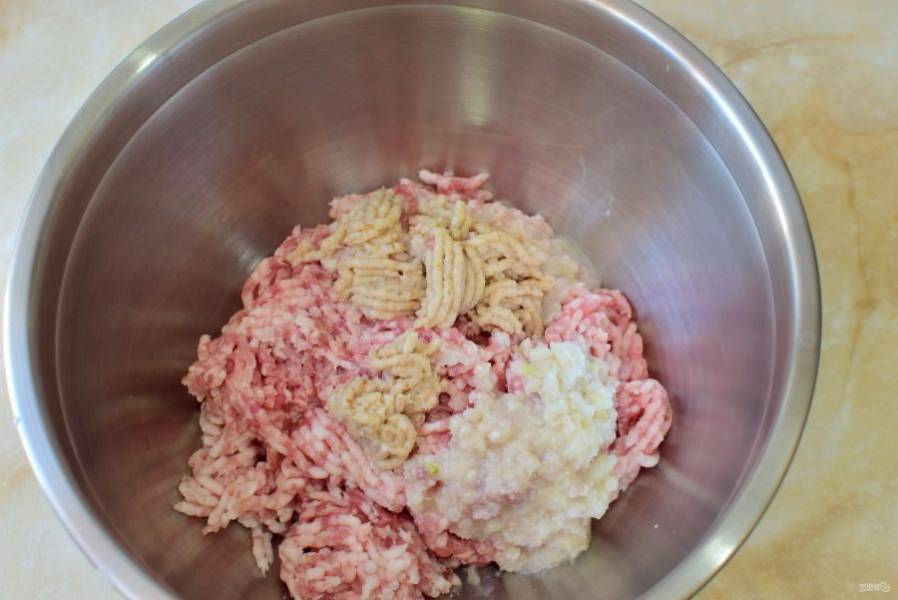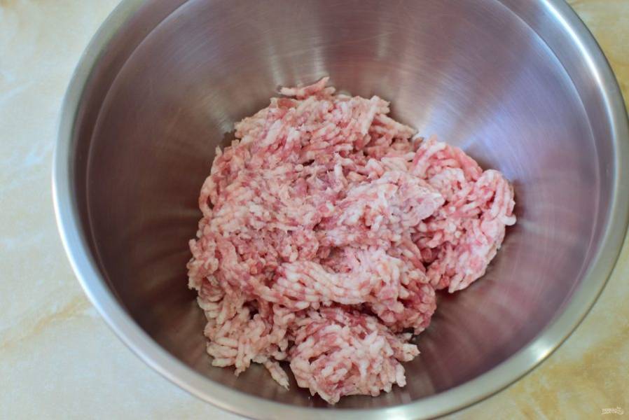 Свинину прокрутите через мясорубку и превратите в фарш.