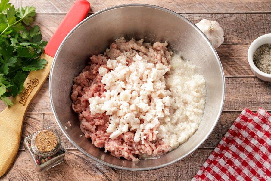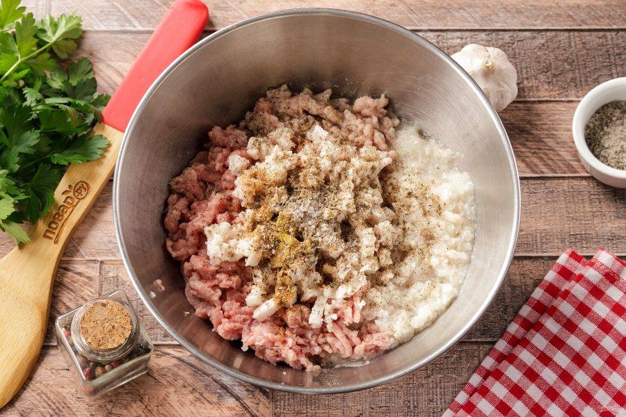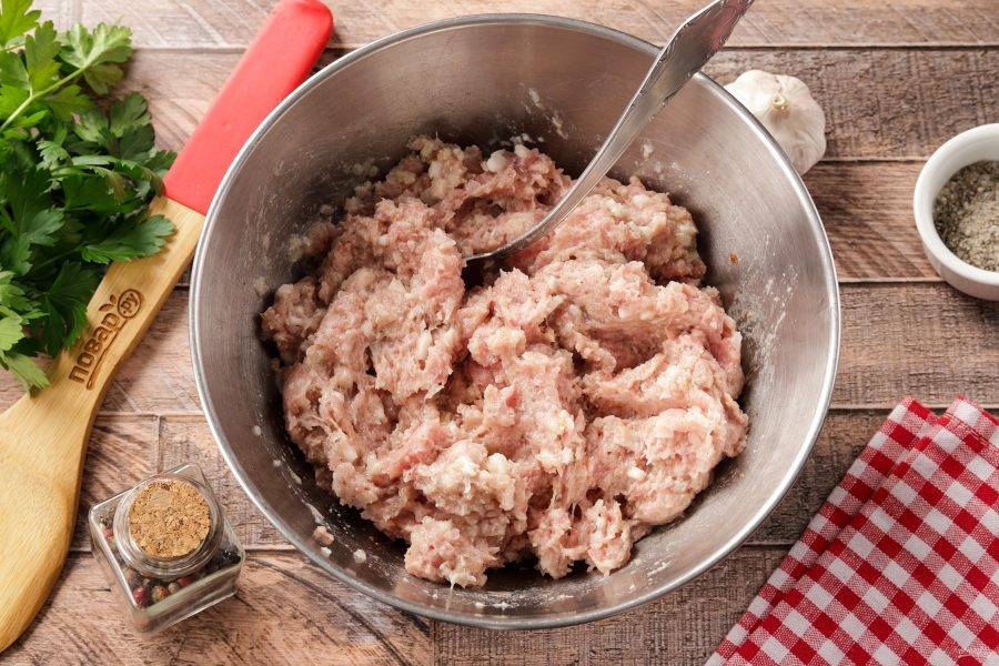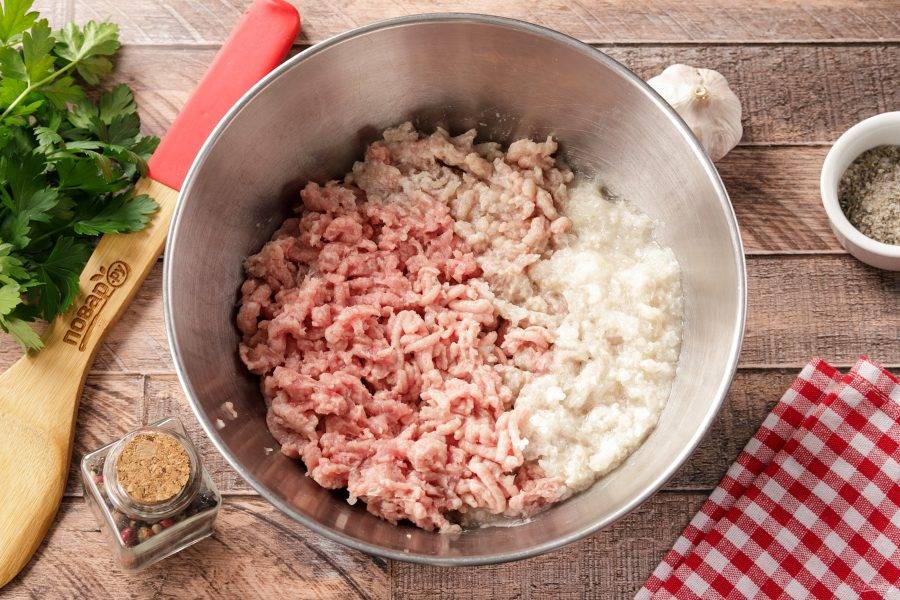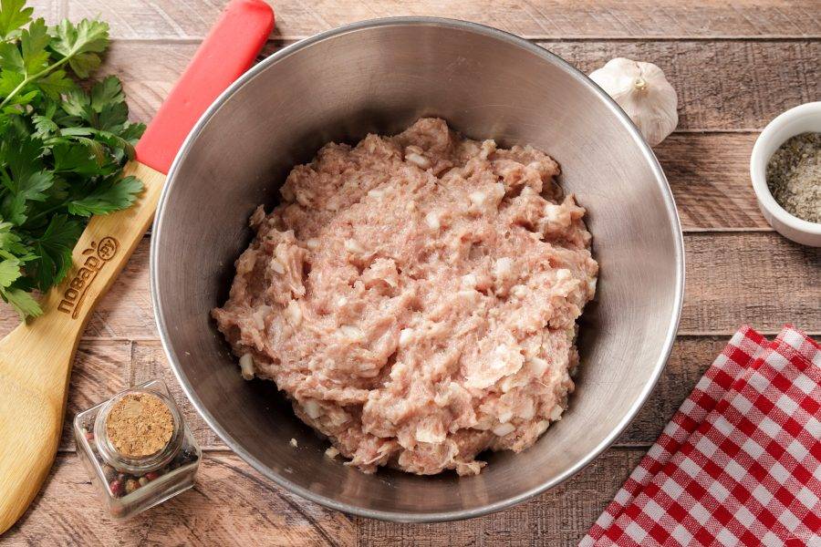 Мясо промойте и обсушите. Пропустите мясо, лук и чеснок через мясорубку.