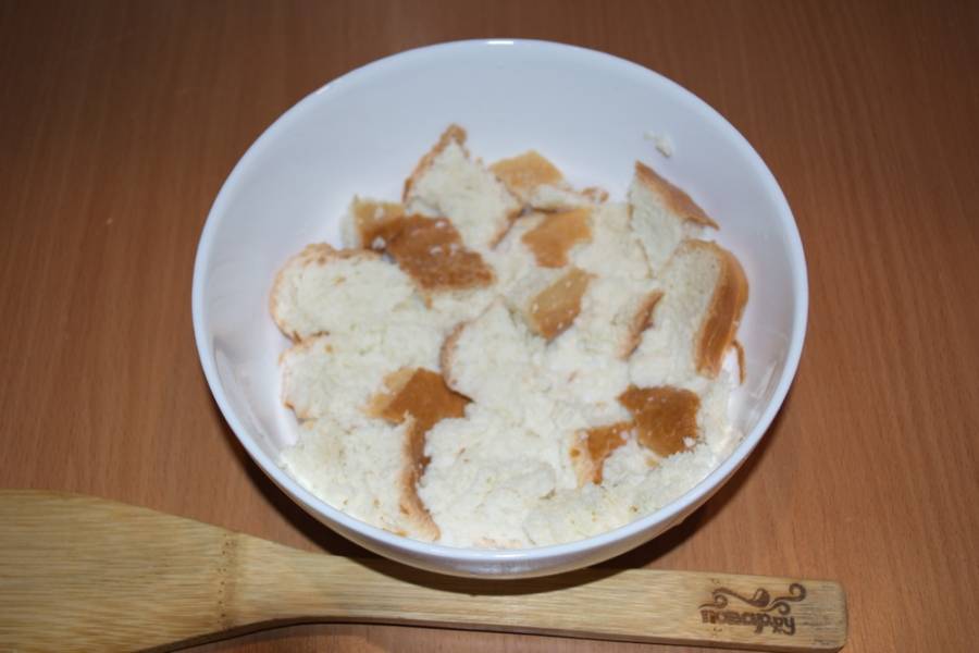 Батон белого хлеба размочите в молоке. Уйдет на это минут 15.