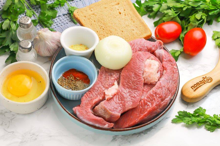 Промойте мясо в воде и срежьте жилы и пленки. Нарежьте небольшими кубиками вместе с луком и прокрутите через мясорубку, добавив чеснок и отжатый от воды хлеб.