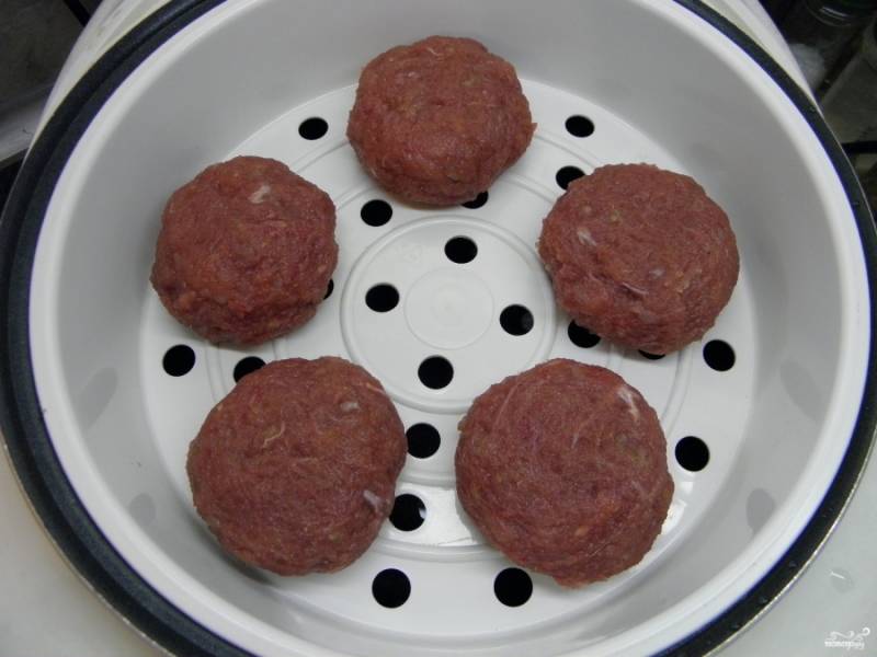 Готовьте котлеты на пару небольшими партия по 5-6 штук в течение 45 минут. Режим мультиварки — "Пар", крышка обязательно закрыта!