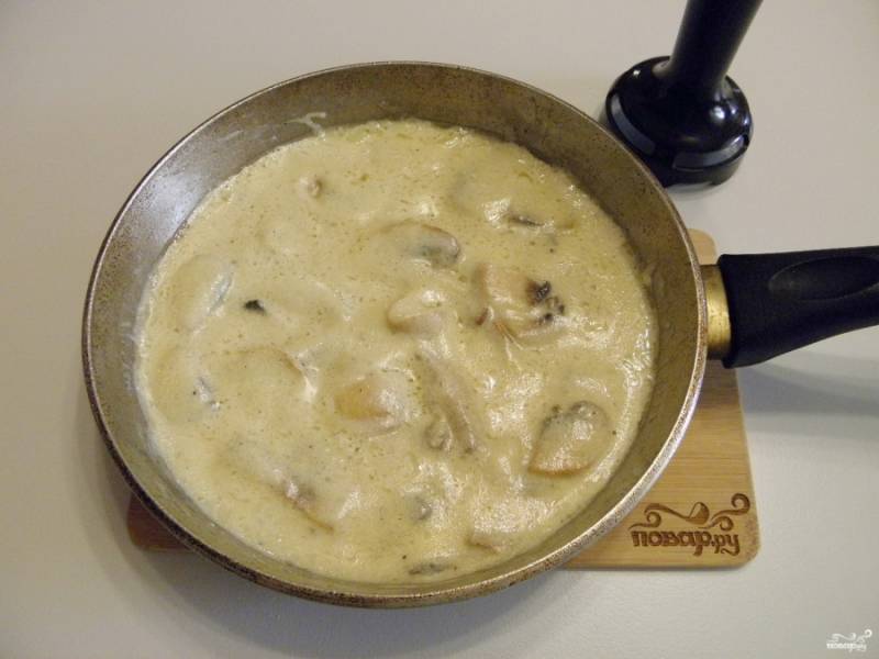 С помощь погружного блендера измельчите массу до состояния крема. Грибной соус готов!