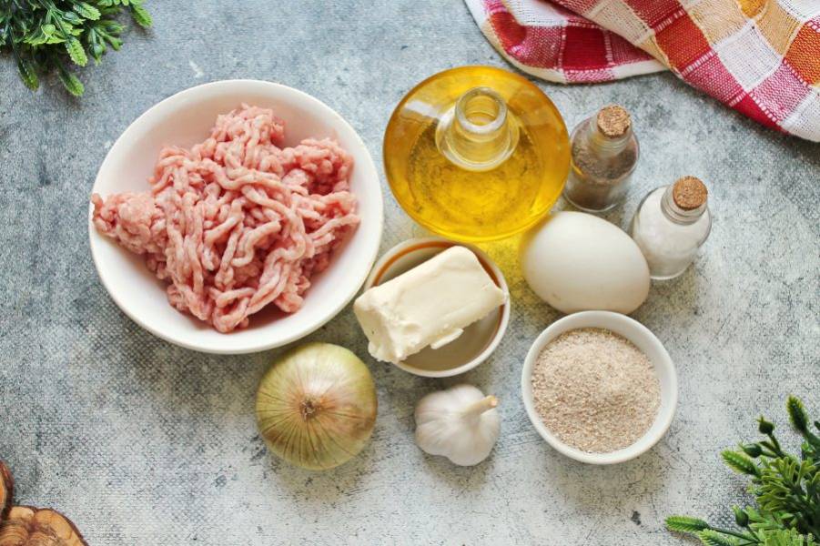 Подготовьте все необходимые ингредиенты для приготовления котлет с чесноком. Чеснок и репчатый лук почистите и сполосните.