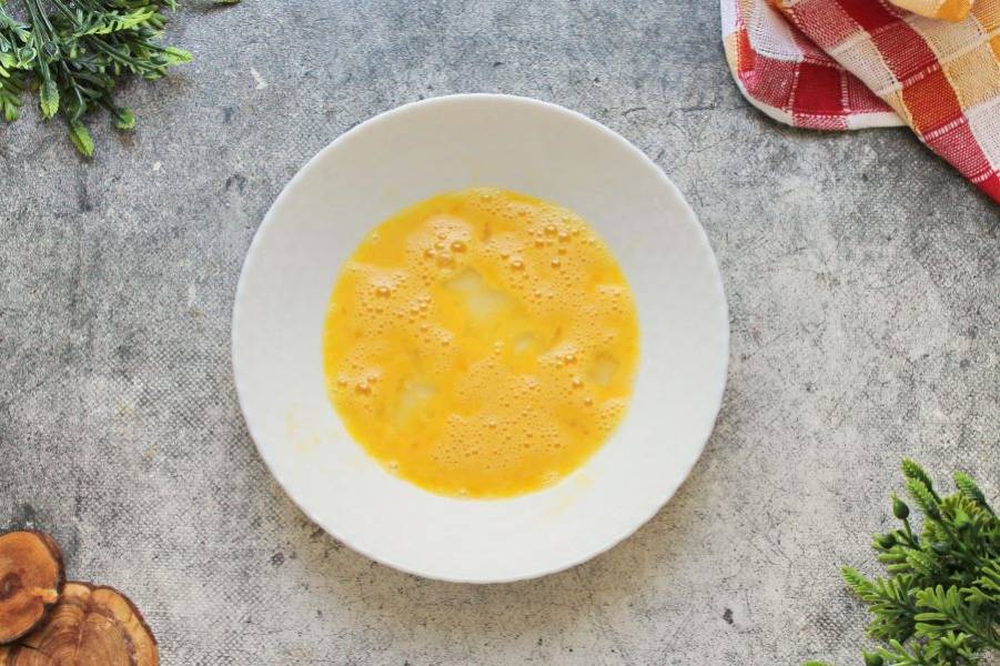 В чистую тарелку разбейте яйцо, посолите и перемешайте до однородности.