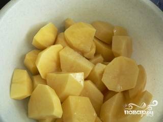 6. Картофель нарезаем довольно крупными кусками. Солим и перчим.