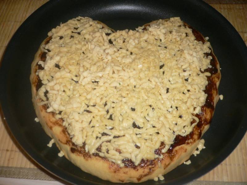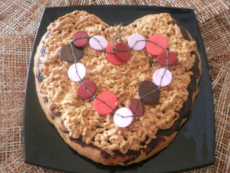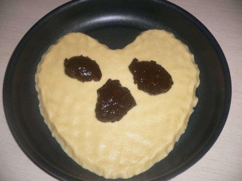Формируем форму сердца(или любую другую фигуру) Далее намазываем его сливовым вареньем.