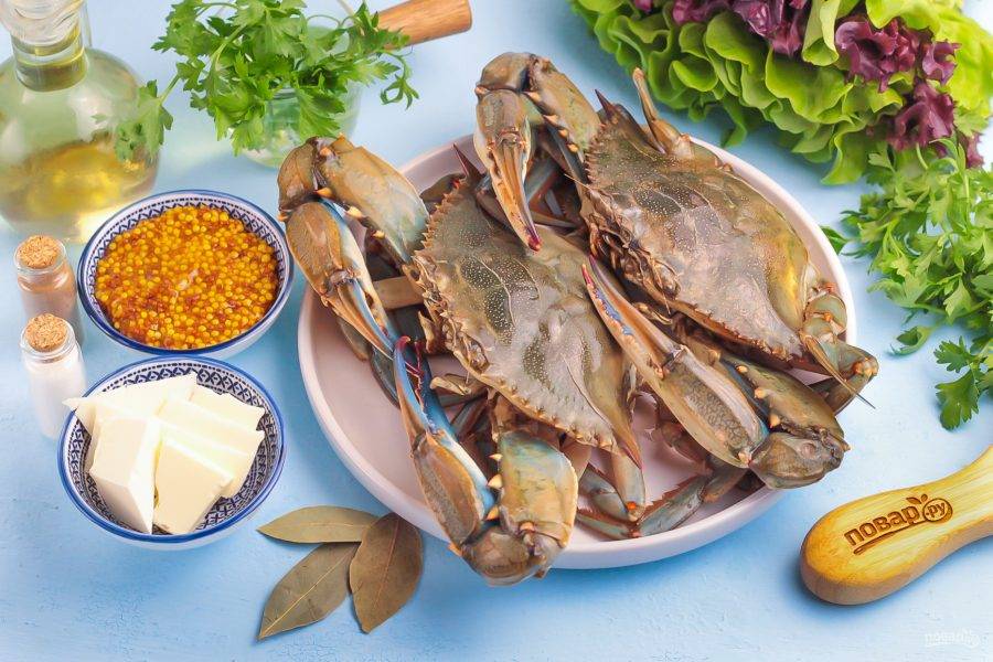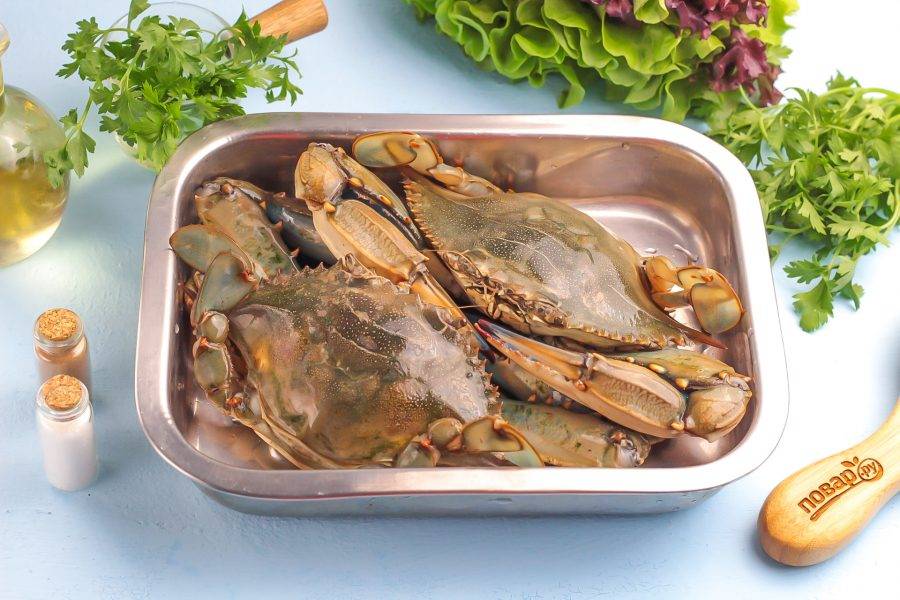 Подготовьте указанные продукты. Крабов тщательно промойте, удаляя ил, глину и т.д.