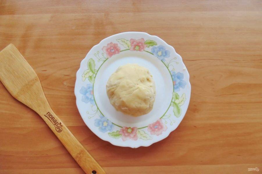 Соберите тесто в шар. Оберните пищевой пленкой и поставьте в холод на 30-40 минут.
