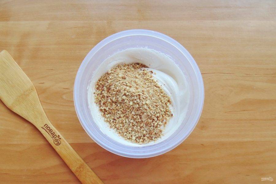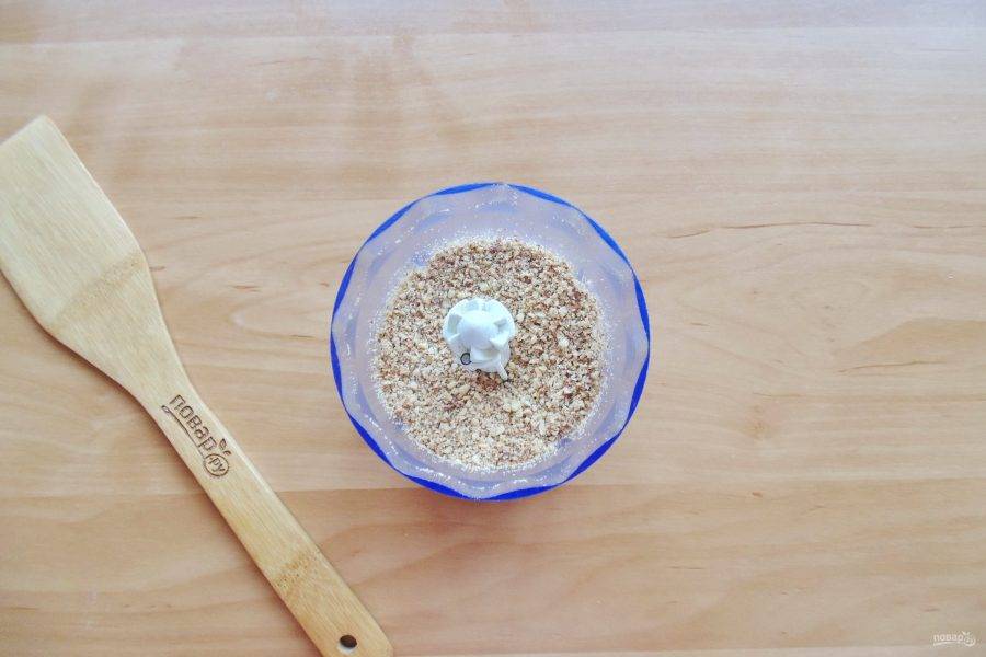 После миндаль охладите и измельчите в блендере до мелкой крошки.