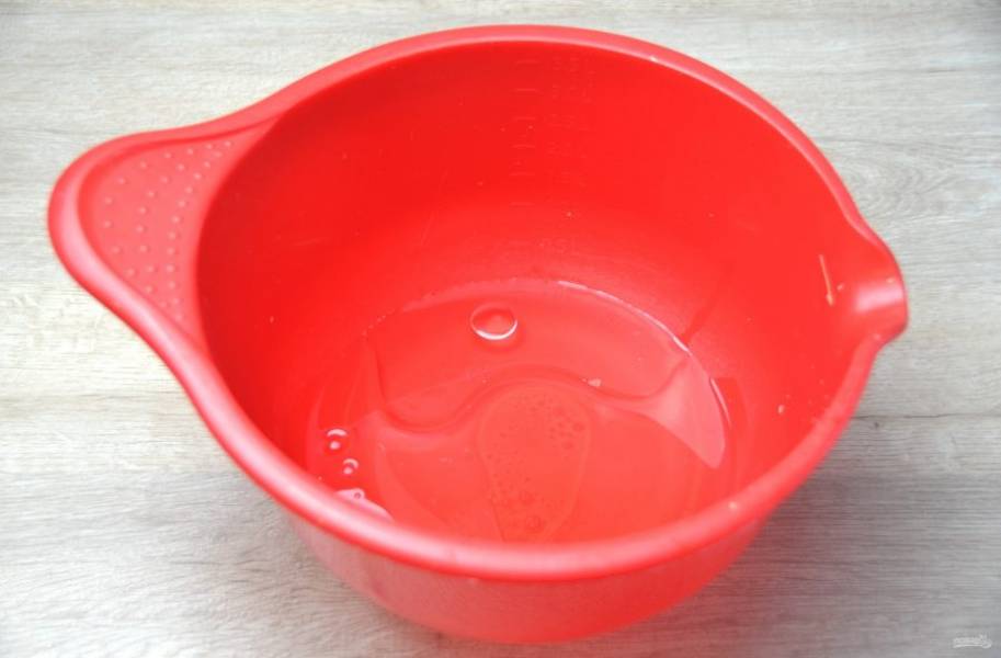 В миску для замешивания теста влейте 135 мл. воды и 90 мл. растительного масла.