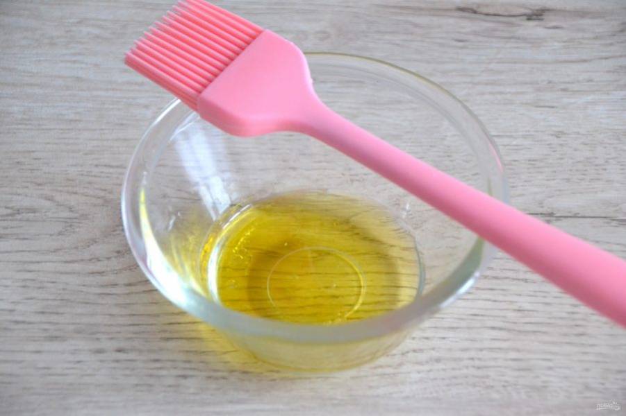 - Масло растительное 110 грамм 90 грамм — в тесто, использовано подсолнечное без запаха, 20 грамм — для смазывания, использовано оливковое