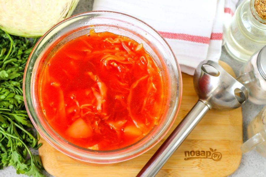 Измельчите все примерно 2-3 минуты, чтобы в крем-борще не попались даже мелкие частички овощей.
