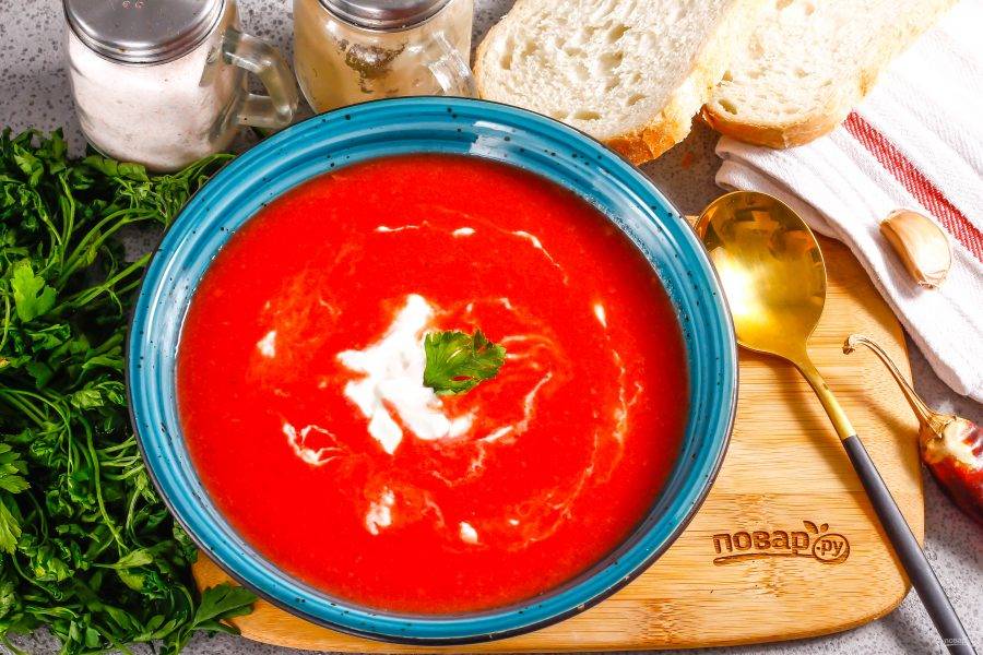 Разлейте первое в глубокие тарелки и подайте со сметаной.