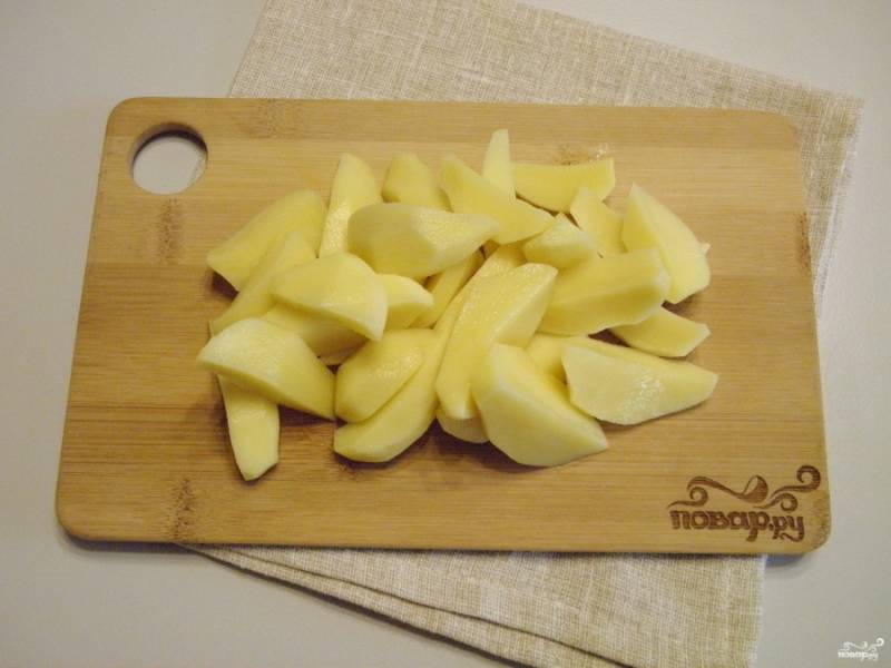 Очистите картофель, порежьте его на 4 части.