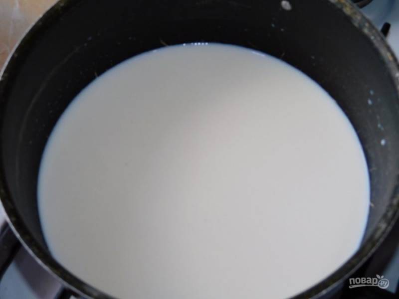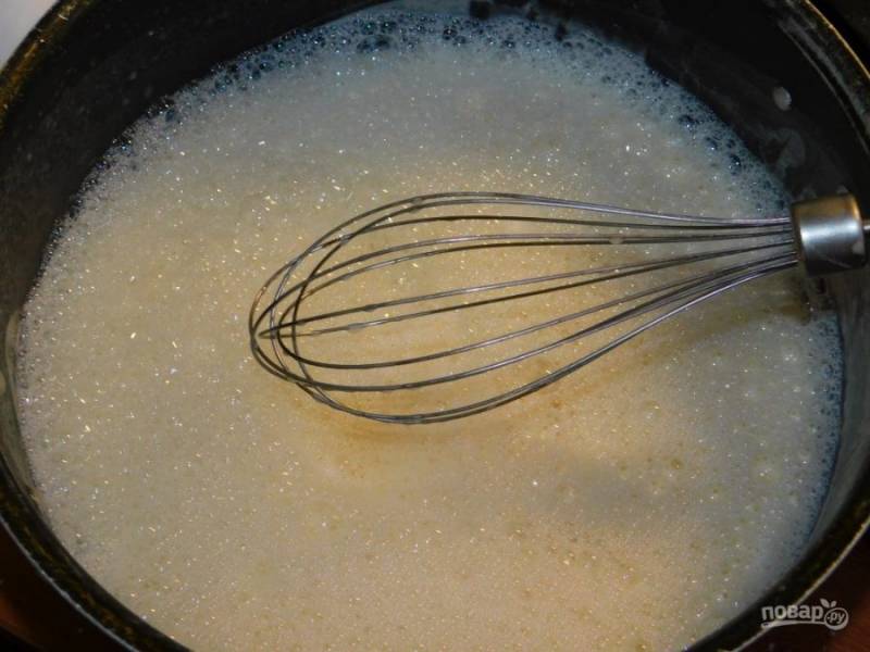 В другой чаше доведите до кипения остальное молоко с сахаром.