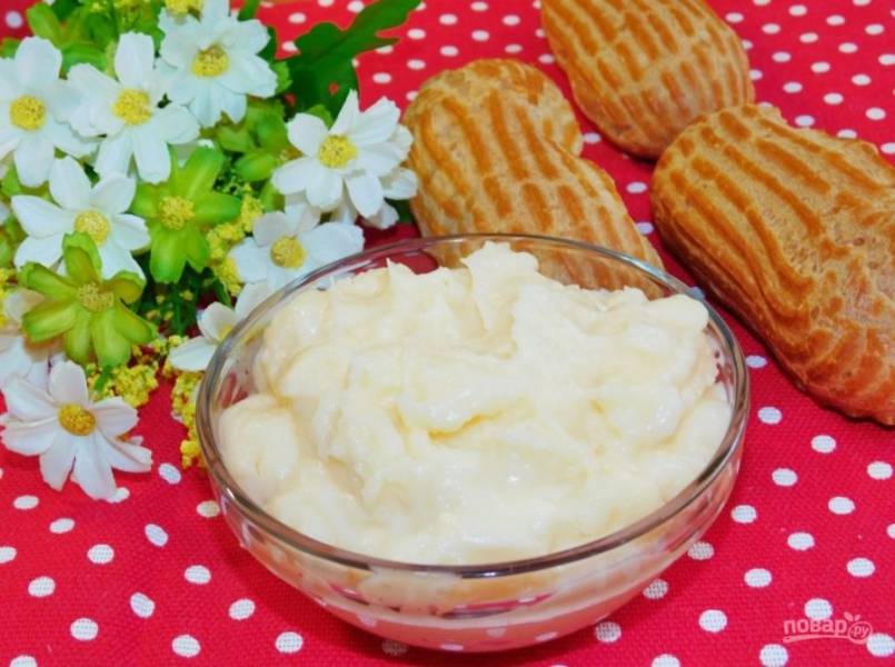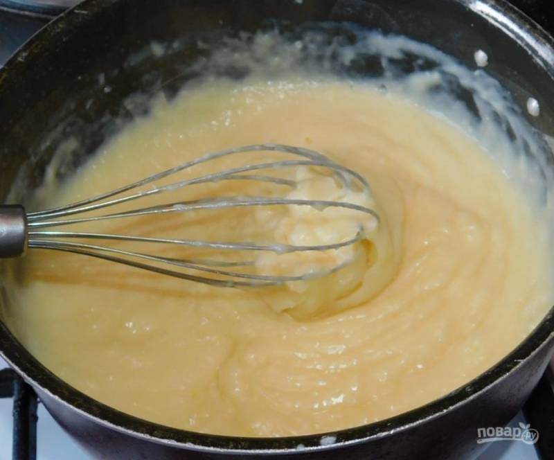 Верните крем на плиту и, помешивая, доведите до густоты.