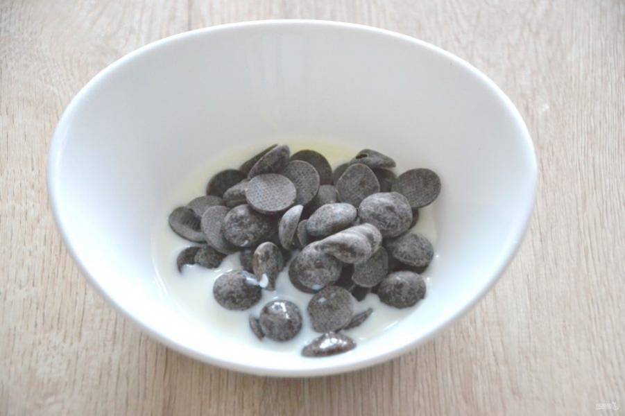 Для приготовления шоколадной глазури смешайте 60 грамм шоколада с двумя столовыми ложками молока, растопите в микроволновой печи короткими импульсами по 15 секунд.