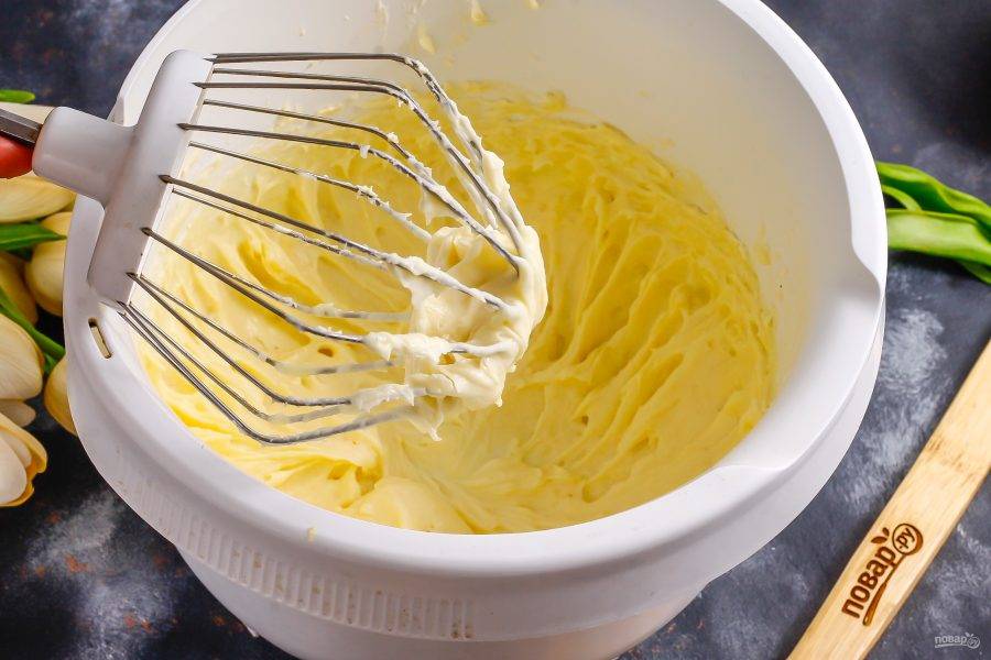Спустя 3-5 минут крем будет идеально держать свою форму, не будет стекать с венчика.
