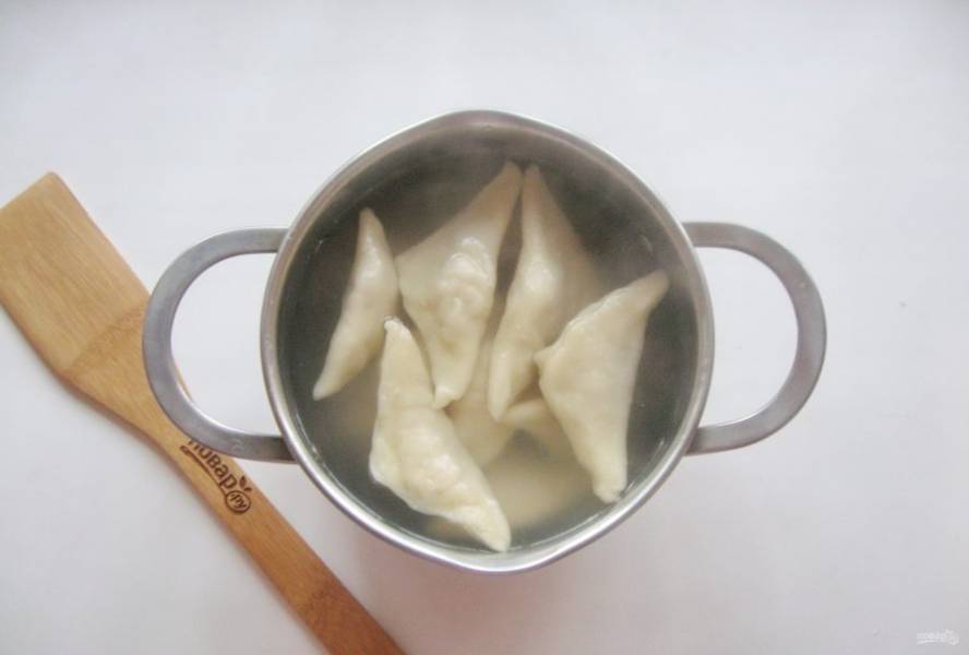 В кастрюле вскипятите воду, немного посолите и добавьте креплах, перемешайте. После того, как они всплывут, варите еще 5-6 минут и доставайте.