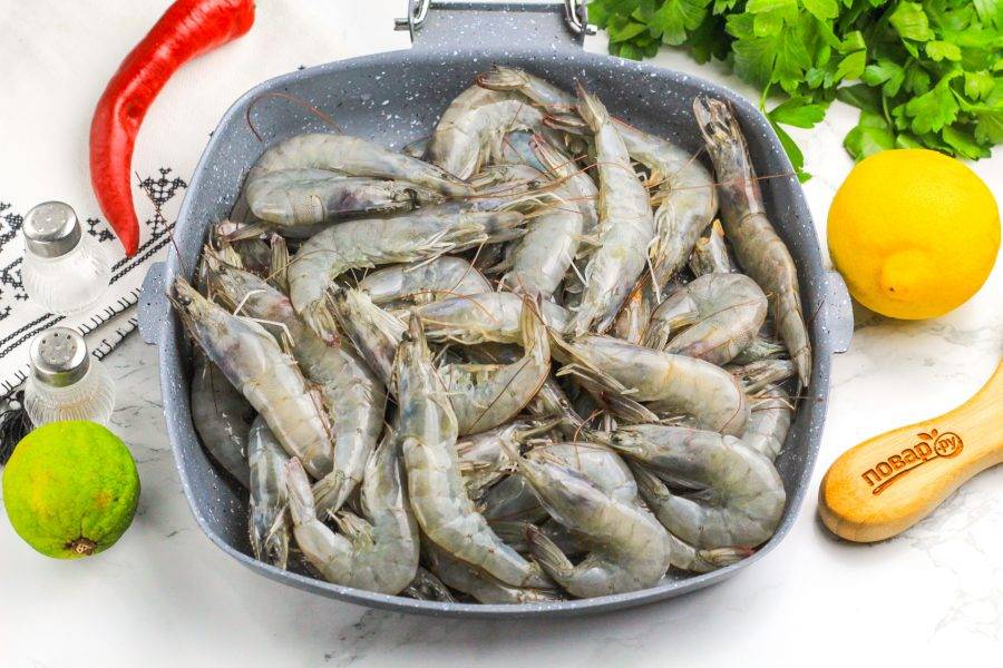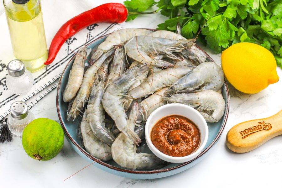 Подготовьте указанные продукты. Соус "Том ям" можно приобрести в супермаркете, там же, где и креветки.