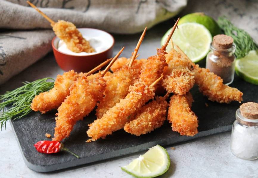 Для уютного вечера в кругу семьи предлагаю приготовить отличную закуску из креветок. Сверху тонкая хрустящая оболочка из сухарей панко, а внутри нежная, вкусная креветка и каждая на шпажке. Заходите!