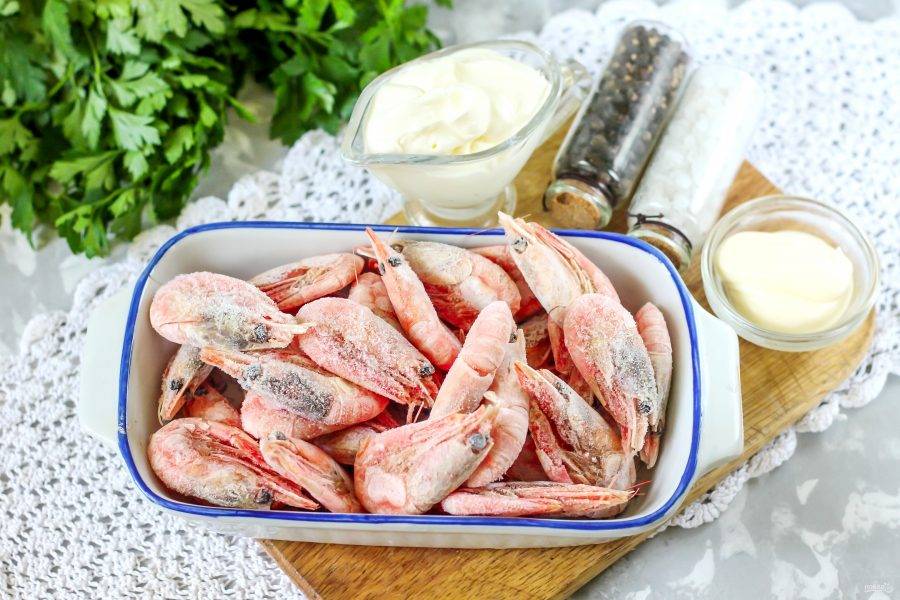 Когда креветки сварятся, высыпьте их в охлажденную воду, остудите и очистите от панцирей.